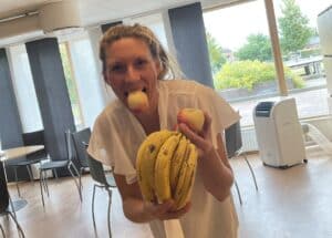 Frukten serveras som mellanmål till alla elever som vill ha, vilket inte bara minskar matsvinnet utan även har andra fördelar: