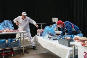 Tävlingsmomentet bestod av att stycka en halv gris och de tävlande hade 30 minuter på sig att omvandla den till produkter färdiga att säljas i butik.