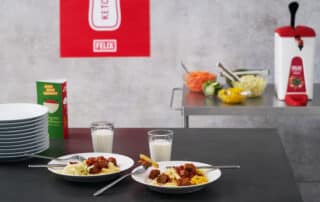 Felix lanserar en hybridköttbulle för foodservice, där hälften av nötfärsen är ersatt med ärtprotein.