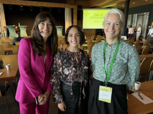 Inger-Cecilia Labba, flankerad av konferenciern Lydia Capolicchio och Rebecka Persson från Orkla