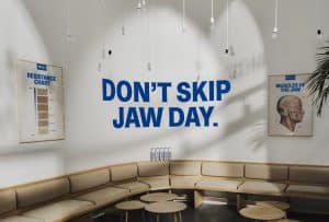 Detta har Wasa tagit fasta på med sitt nya Jaw Workout Gym som öppnat på Surbrunnsgatan 47 i Stockholm, och där besökarna guidas genom olika övningar via en videoskärm.